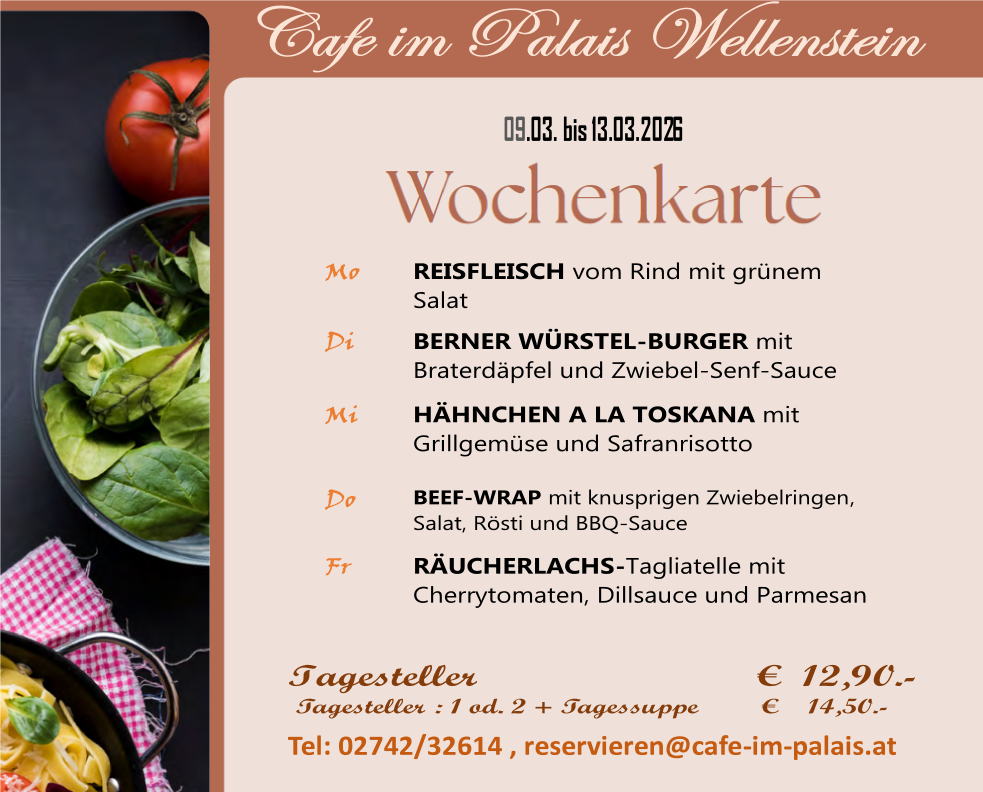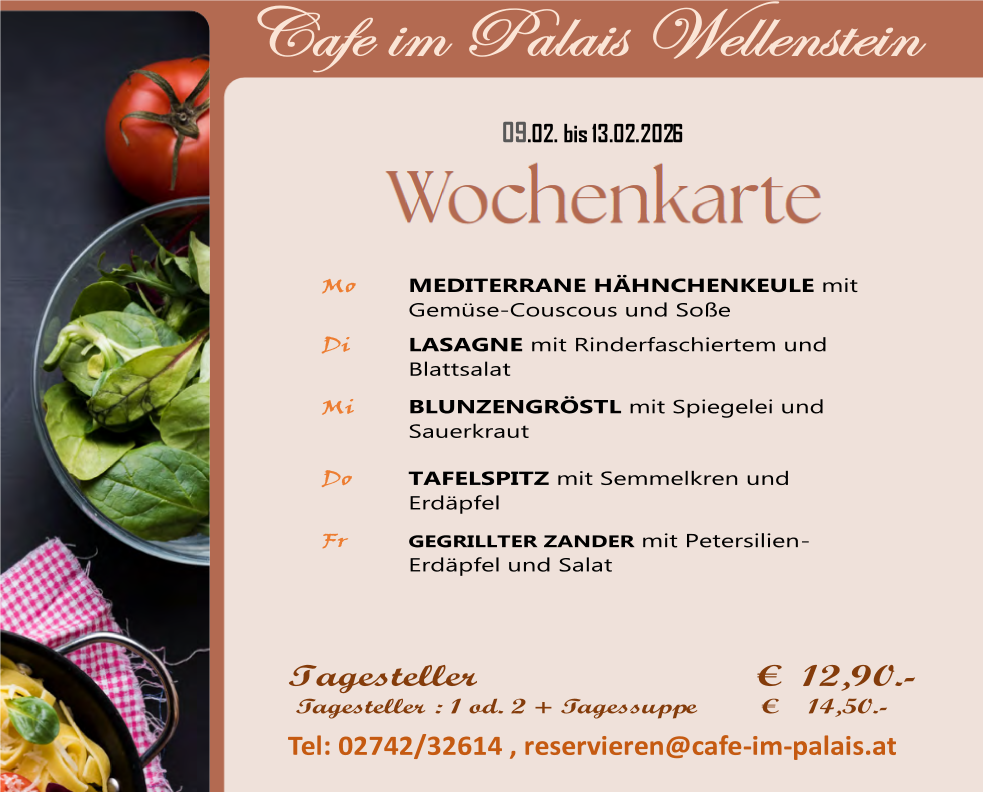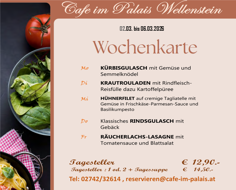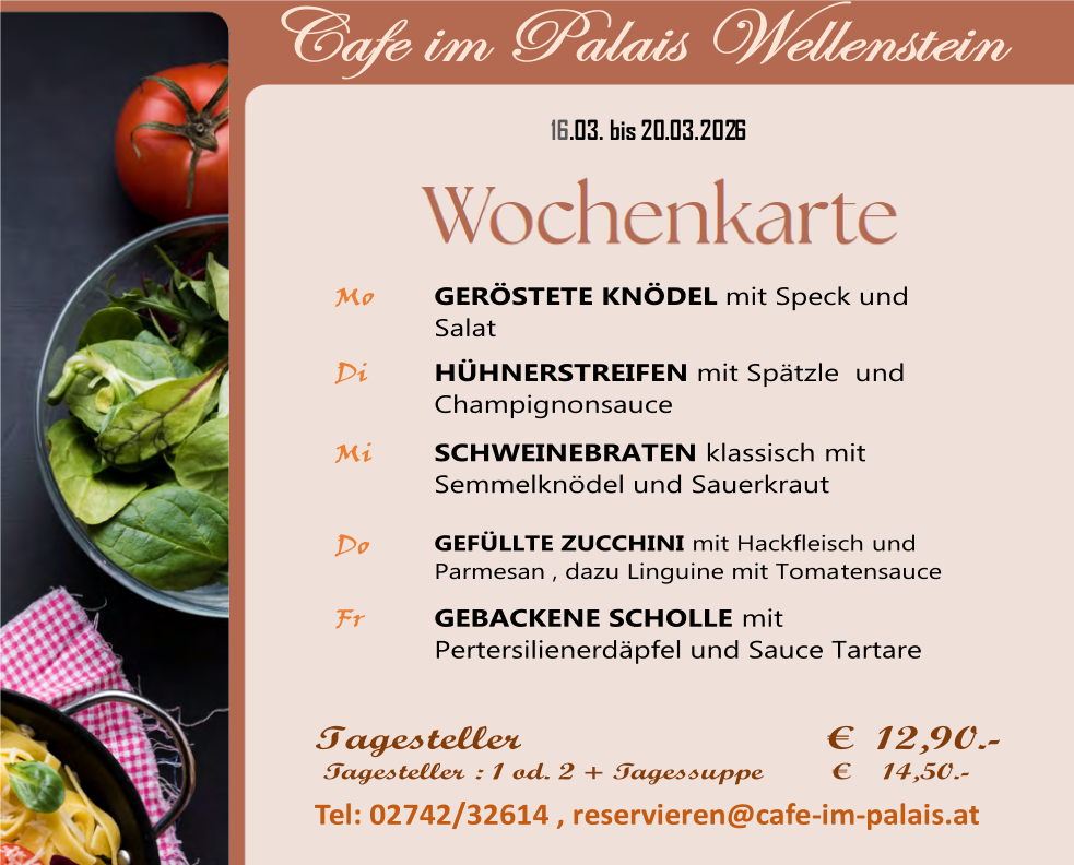 wechselnde Tagesgerichte und eine gut sortierte Mehlspeisentheke.