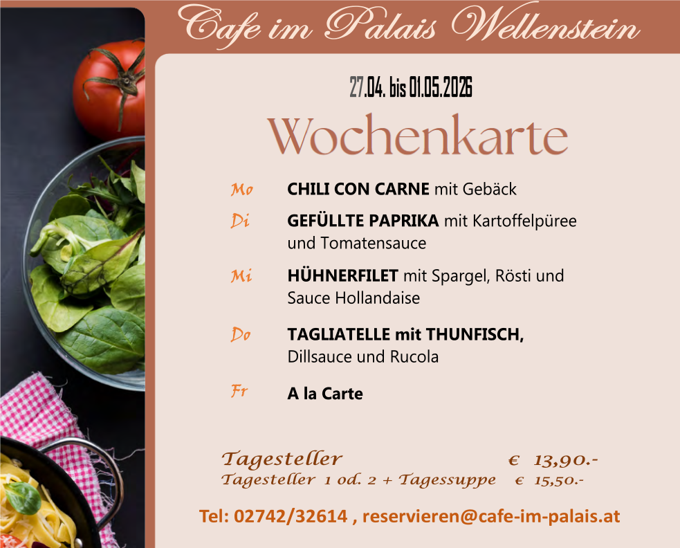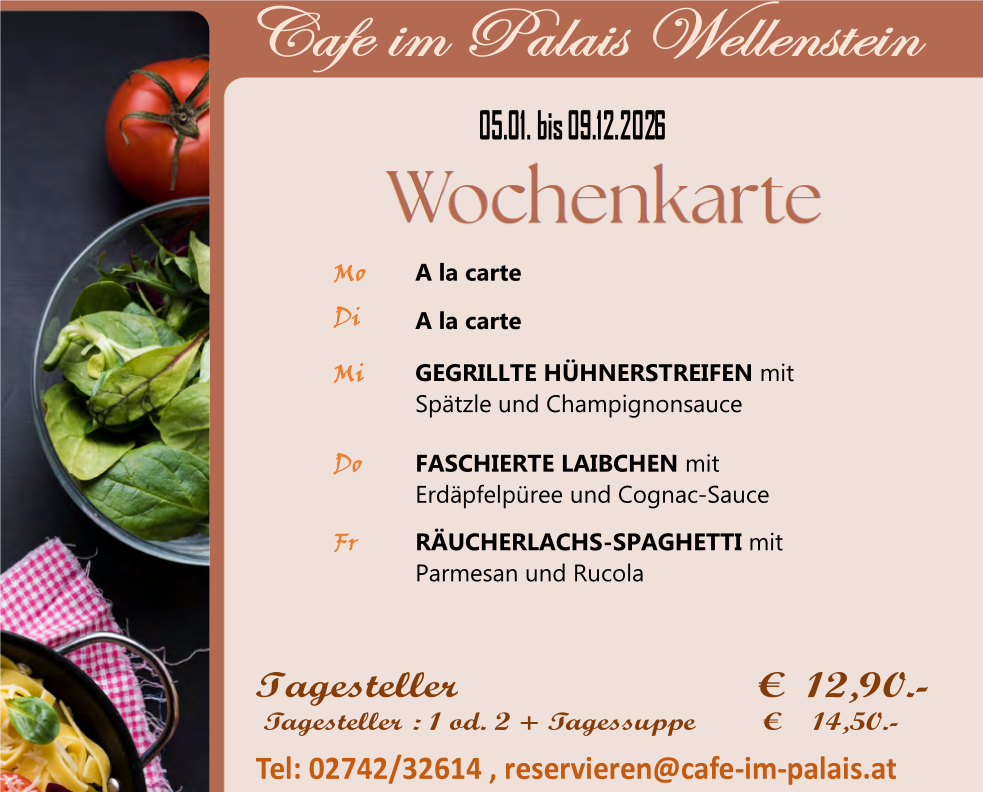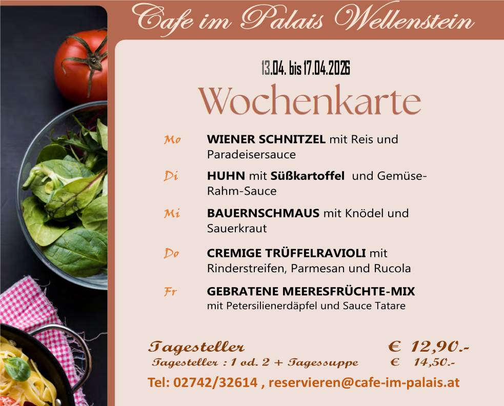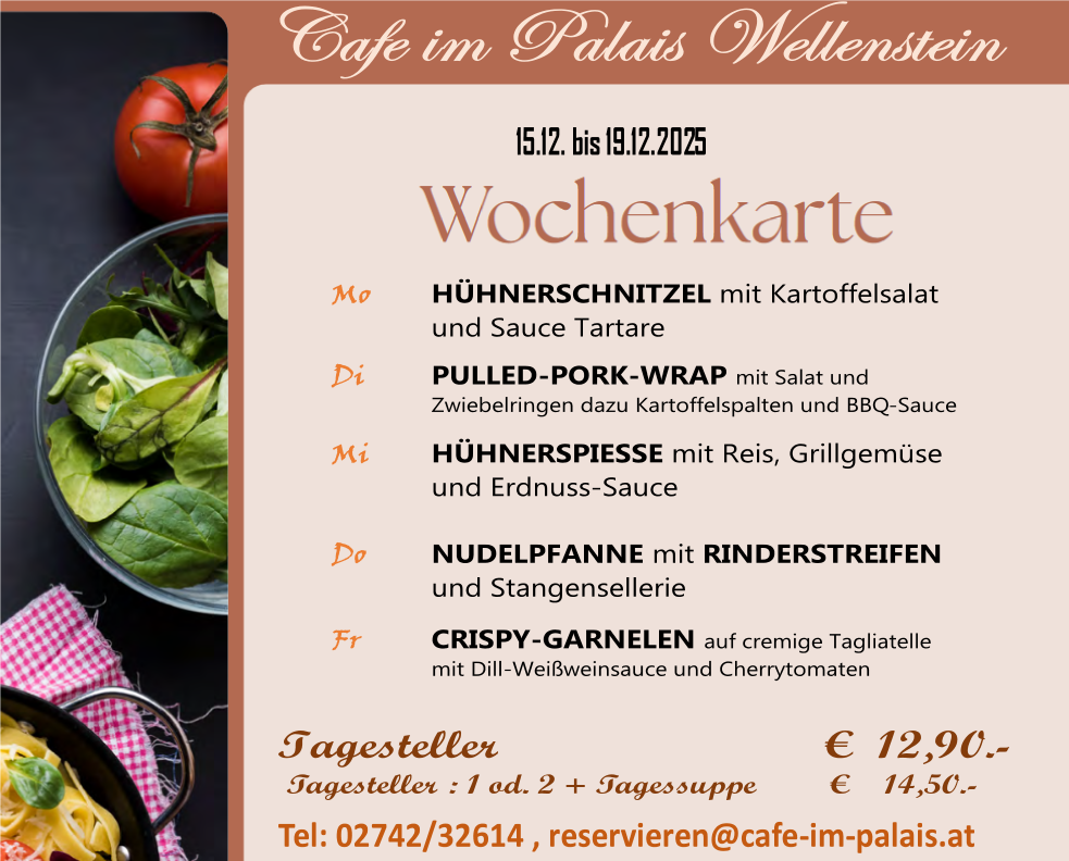 wechselnde Tagesgerichte und eine gut sortierte Mehlspeisentheke.